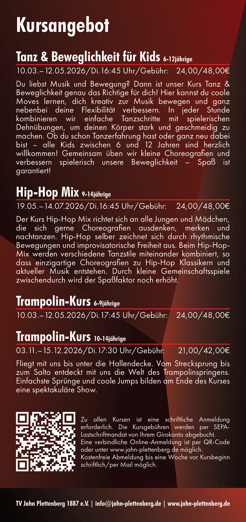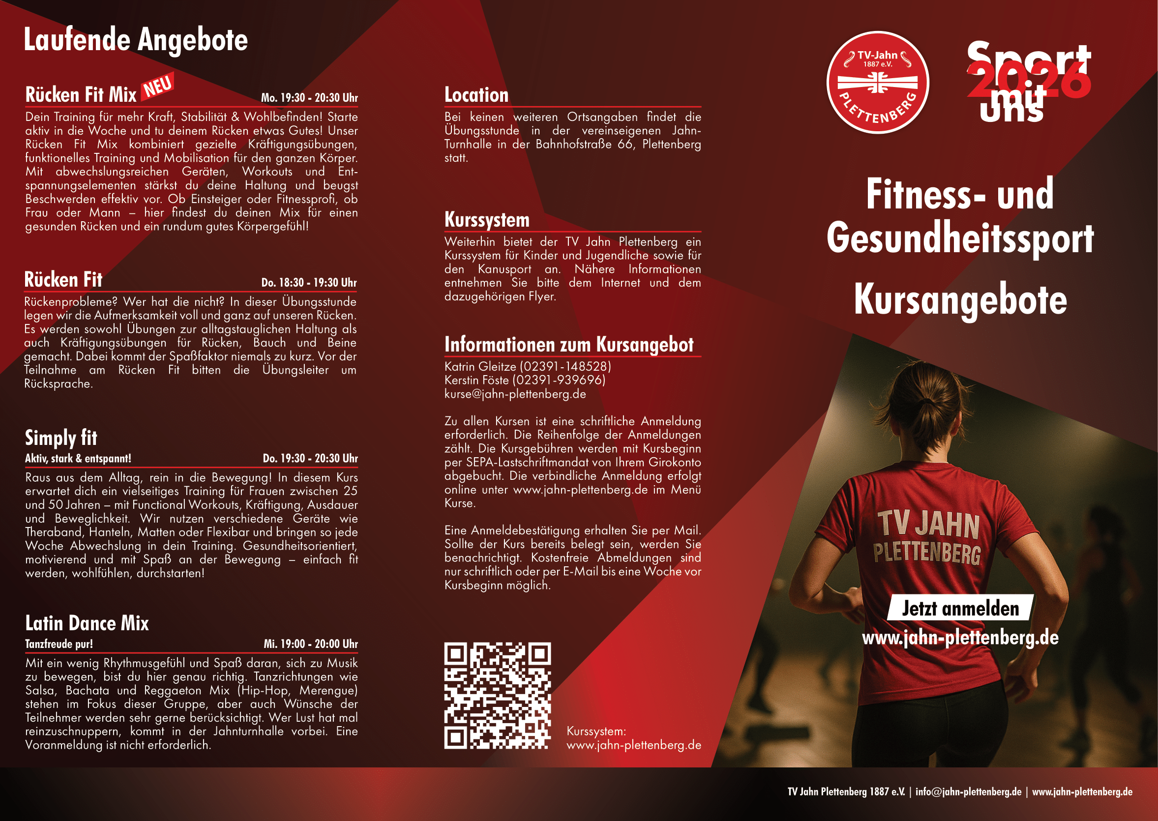 Die Gesundheitssportkurse für das Jahr 2026 sind ab sofort online und die Anmeldung ist offen.